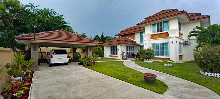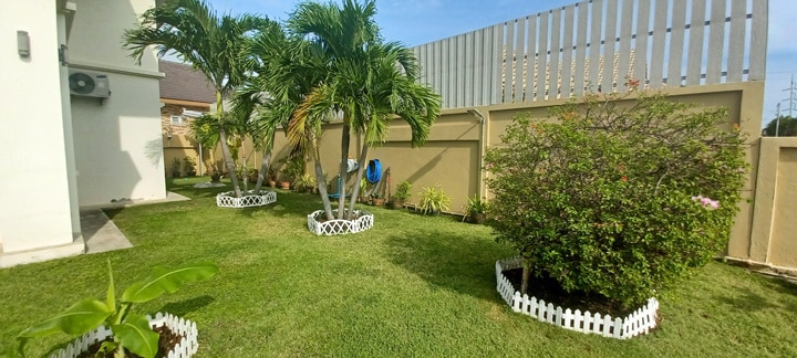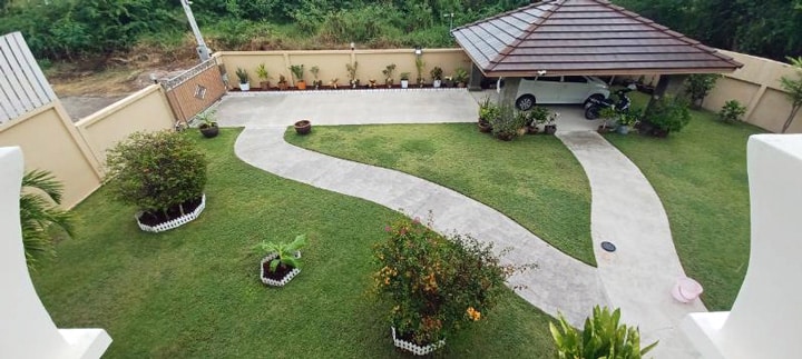 후아힌에 있는 내 집은 2016년에 650m2에 지어졌으며 집은 190m2입니다. 집에는 4개의 침실, 3개의 욕실, 주방, 55제곱미터의 거실이 있습니다. 또한, 간이 차고와 정원 집.