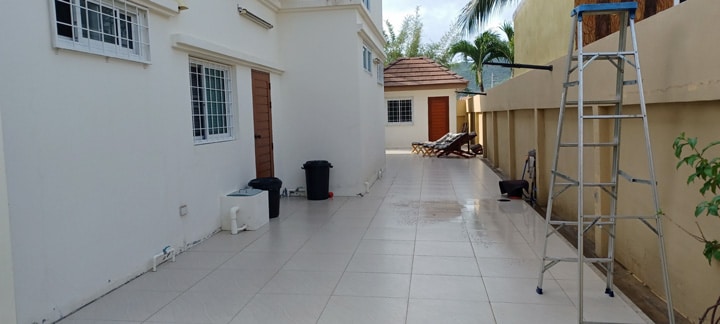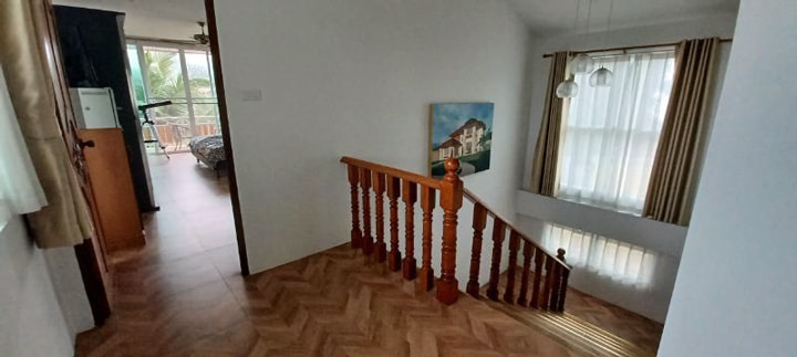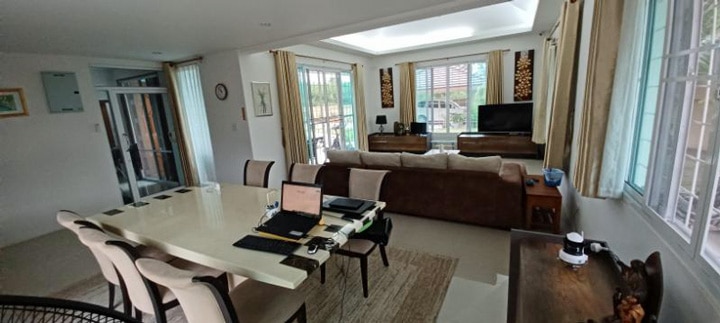 집은 막다른 골목 끝에 있어 매우 조용합니다. 큰 창으로 많은 빛이 들어오고 남서쪽에는 그늘을 제공하는 코코넛 나무가 있습니다. 우리는 걱정할 필요없이 모든 것을 처리 한 훌륭한 태국 계약자가있었습니다.