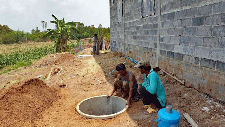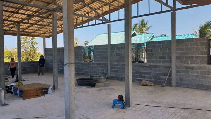 그 후 장마를 겪었고 15,000바트의 기초와 15,000바트의 지붕 공사를 위해 A4에 한 자매가 기억에서 그렸던 그림을 그렸습니다.