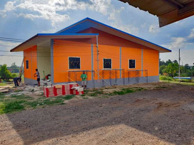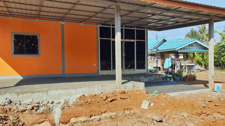 그 후, 내부와 외부 벽도 20,000바트에 회반죽을 했으며 문과 창문을 다시 설치하는 데 5000바트를 더했습니다.