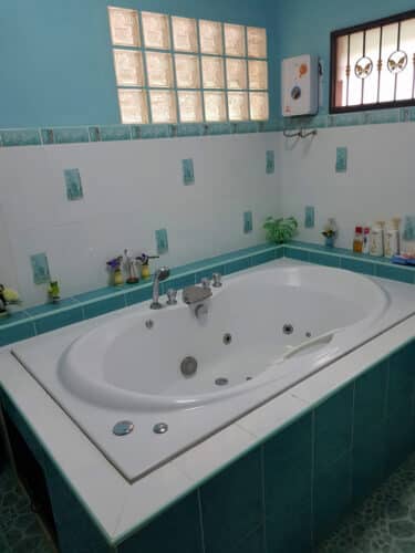 침실 5개와 욕실 5개. 넓은 거실과 넓은 다이닝 키친. 64제곱미터의 수영장. 차고 1개와 임대 주택 2개. 2 램프로 도로.