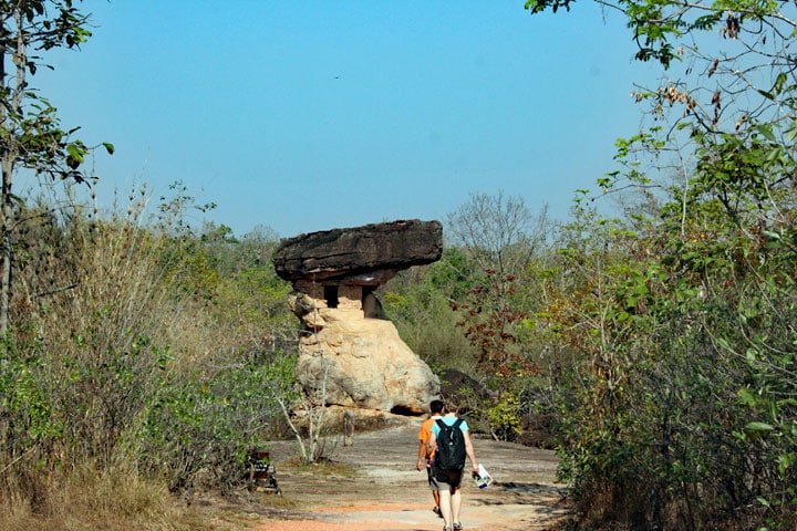 아침 식사 후 우리는 Ban Phu를 방문하기 위해 일찍 출발했습니다. 이 역사적인 공원 Phu Phrabat에서 우리는 메콩 강의 초기 경로에 의해 형성된 기발한 암석을 보았습니다. 이 지역에는 많은 사원이 있으며 그중 일부는 여전히 사용되고 있습니다. 이 사원 중 하나는 지붕으로 거대한 바위를 가지고 있습니다.