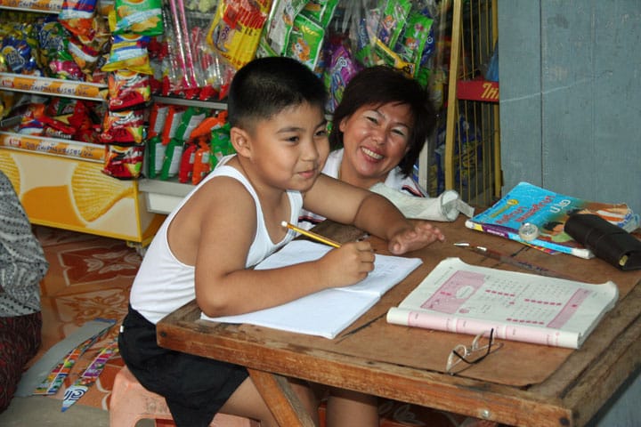 이 안내서는 아주 오래된 암벽화 (1500-4000 년 전에 그리스도)에게 우리의 관심을 끌었습니다. Si Chiang Mai의 도시에서 우리는 라오스의 경계에 메콩 강을 따라 갔다. 우리는 반대편에 비엔티안을 볼 수있었습니다. 1994 년 4 월부터 태국은 우정의 다리를 통해 비엔티안과 연결되었습니다. 나는 우리가 길을 가로 질러 운전하지 않는 것이 부끄러운 줄 알았습니다. 그러나 계획된 여행과의 편차는 없었습니다! 점심은 상콤에서 사용되었으며, 메콩 강에서 놀랍도록 편안한 시간을 보냈습니다. 라오스로 쉽게 걸어 갈 수있는 물이 너무 적었습니다. 라오스는 빽빽한 열대 우림에 가려져 있으며 태국 쪽은 경작됩니다. 조용한 Chiang Khan에서 우리는 좁은 먼지가 많은 거리를 발견했고 대부분의 집은 여전히 나무로 만들어졌습니다. 사람들은 집에서 골동품 품목을 팔고 수집했습니다. 아이가 숙제를하고 밖에 앉아 있었는데 내가 그에게 말했을 때 입이 열렸다. "tham thie soet na kha"(태국어 키보드가 없어요!).