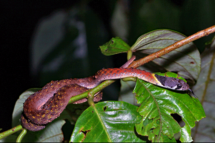 태국의 뱀 : 붉은 목 용골 (Rhabdophis subminiatus)