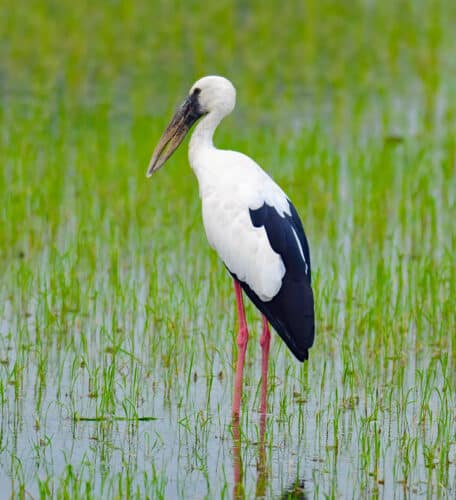 인디언 갭퍼 (Anastomus oscitans)는 황새 가족의 큰 물속입니다. 열대 아시아에서 발견됩니다. 여기에는 인도와 스리랑카, 동남아시아까지 포함됩니다.
